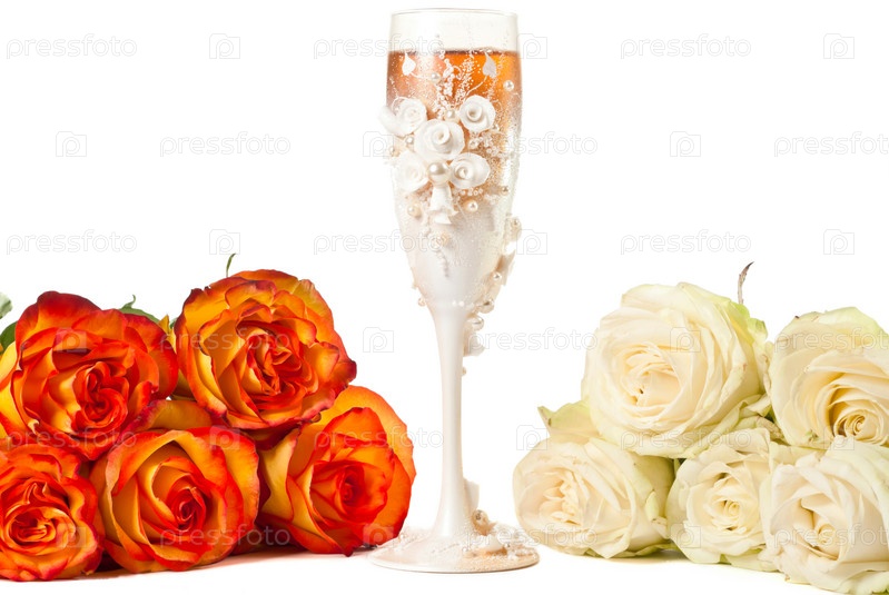 Бокал шампанского и розы