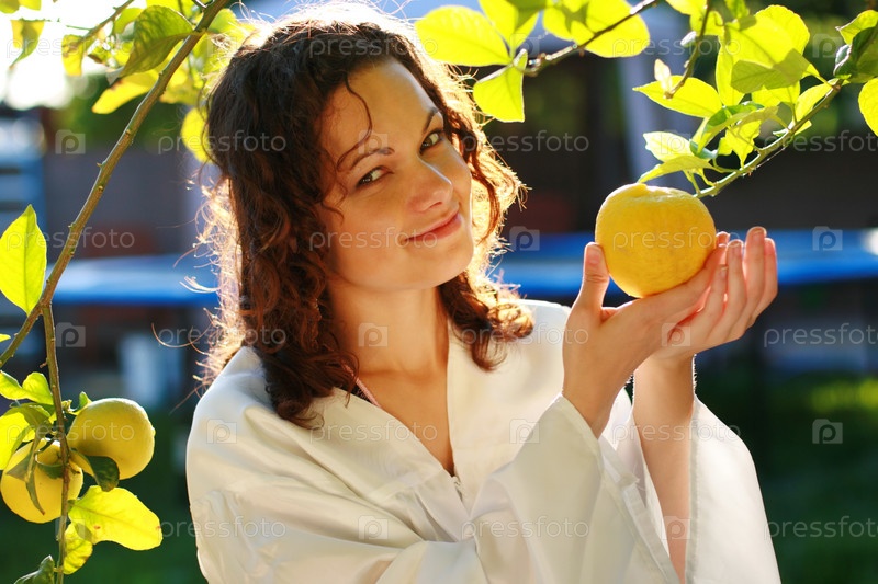 Портрет молодой девушки, держащая лимон