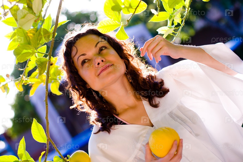Портрет молодой девушки, держащая лимон