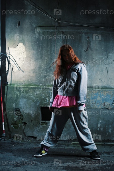 Молодая девушка на фоне старой стены