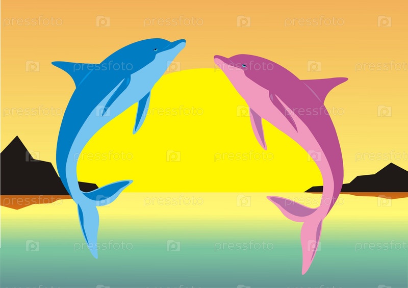 Дельфины на закате