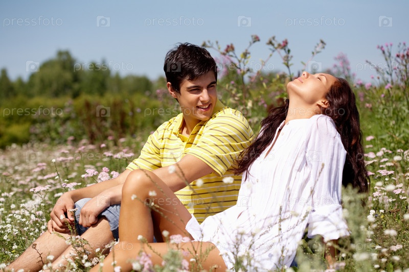Пара молодых людей в поле