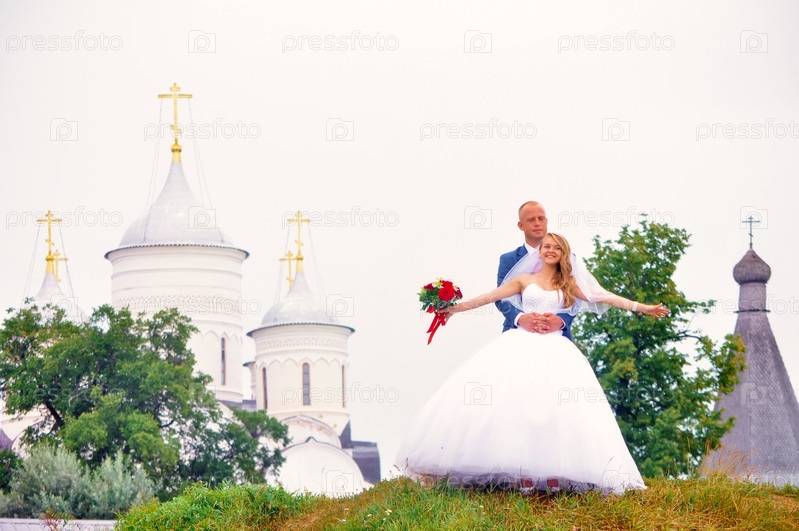Невеста и жених на свадебной прогулке