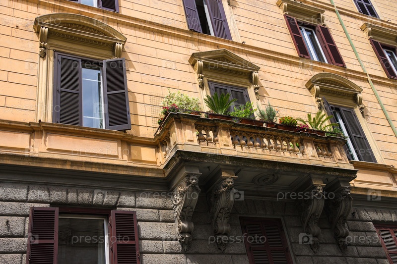 Цветы на балконе красивого итальянского дома