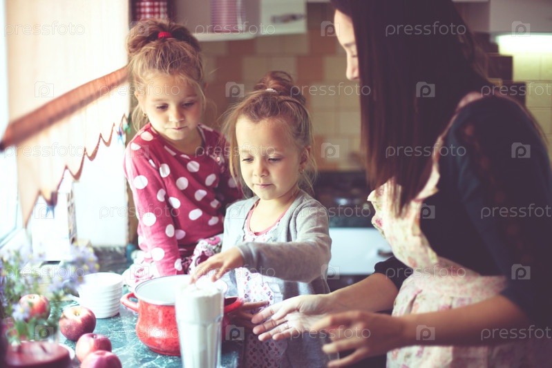 Мать с детьми на кухне