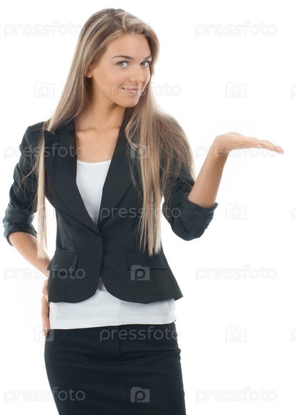 Деловая женщина показывает что-то на ладони