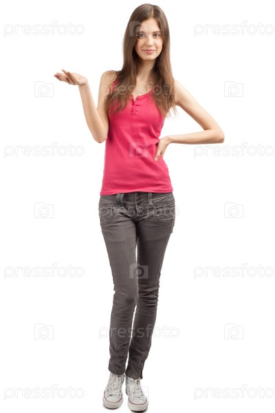 Девушка что-то показывает на ладони