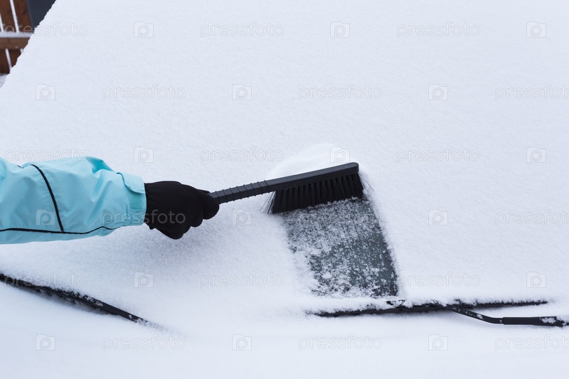Рука чистит откно автомобиля