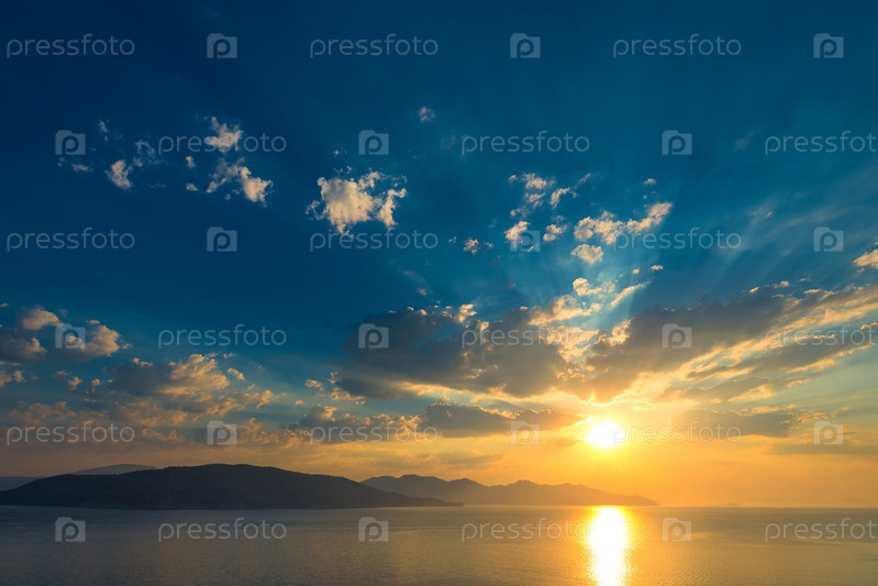 Силуэт горы и утреннее солнце над морем