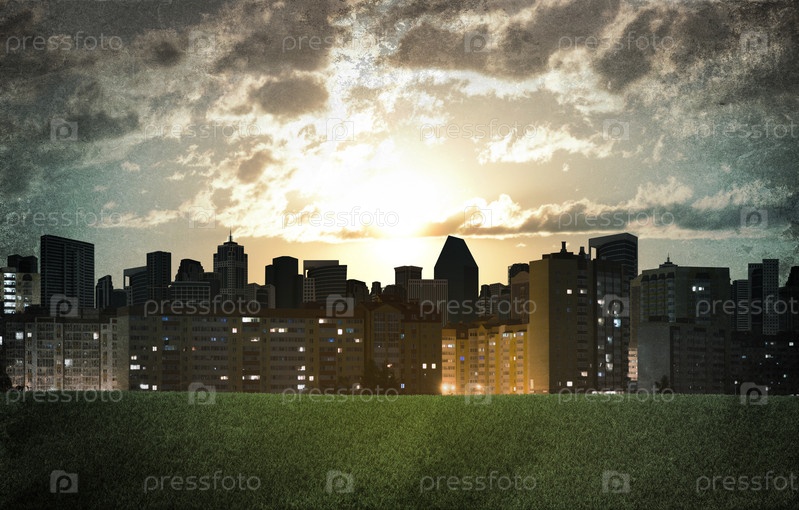 Вечерний город. Здания и поле