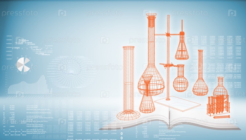 Пробирки и колбы на открытой книге