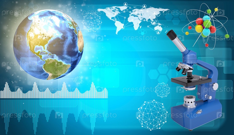 Земля, микроскоп и модель молекулы. Концепция науки