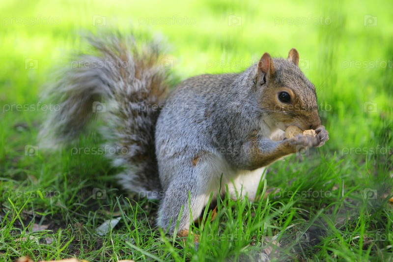 Любопытная белка с орехом в Центральном парке, Нью-Йорк