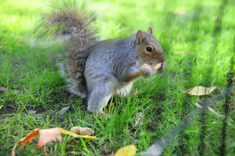 Любопытная белка с орехом в Центральном парке, Нью-Йорк