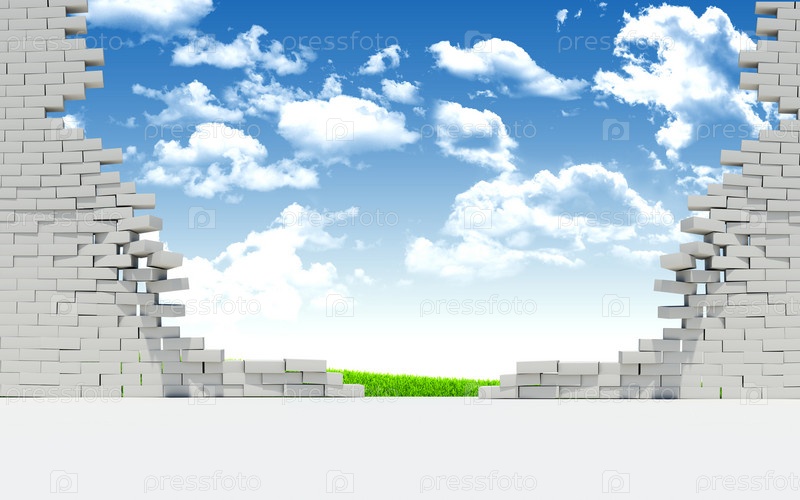 Разрушенная кирпичная стена и небо