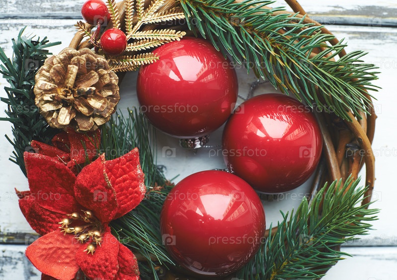 Декоративные шары и рождественский венок