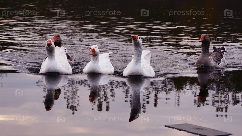 Семья плывущих гусей