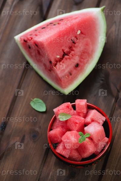 Нарезанный кубиками арбуз с мятой