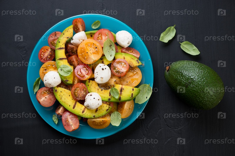 Салат с авокадо-гриль, помидорами и моцареллой
