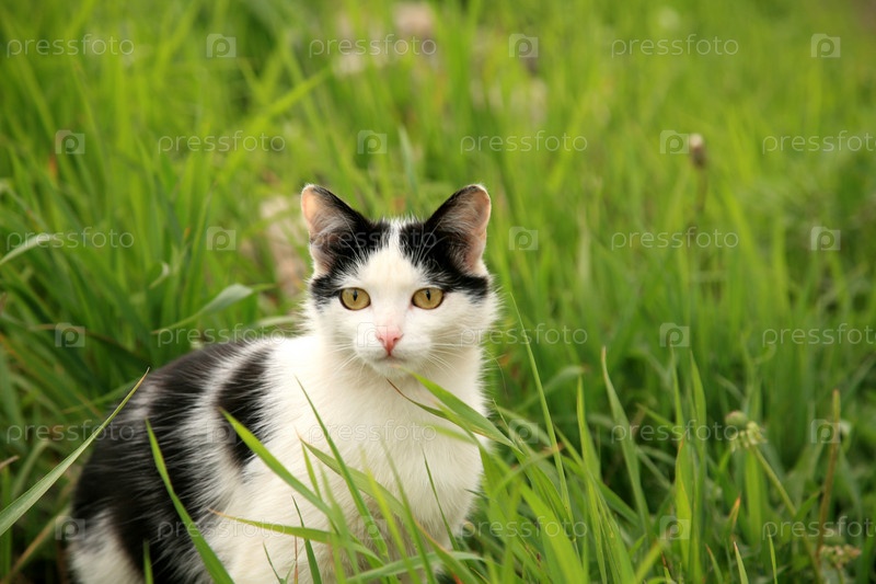 Кот в зеленой траве