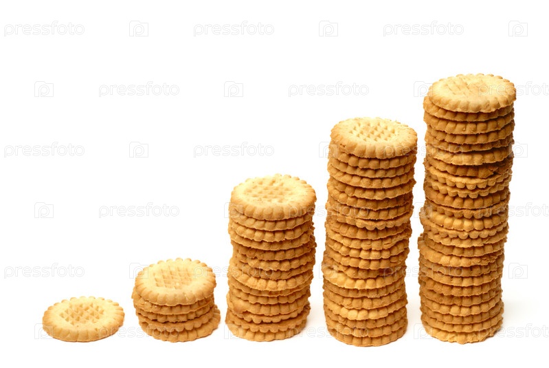Пять столбов из печений на белом фоне