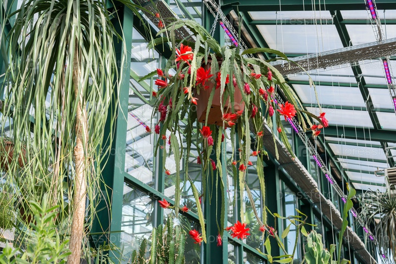 Красивые красные цветы в теплице