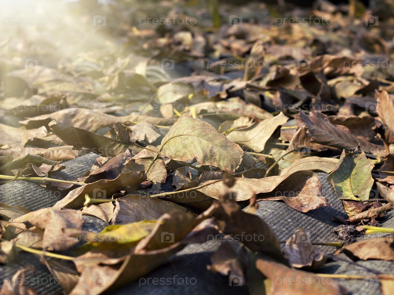 Опавшие листья, освещенные солнцем