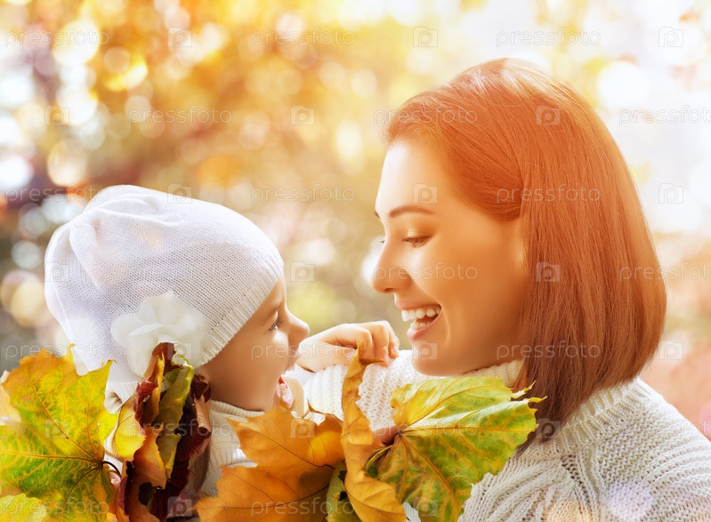 Мать с дочерью в осеннем парке