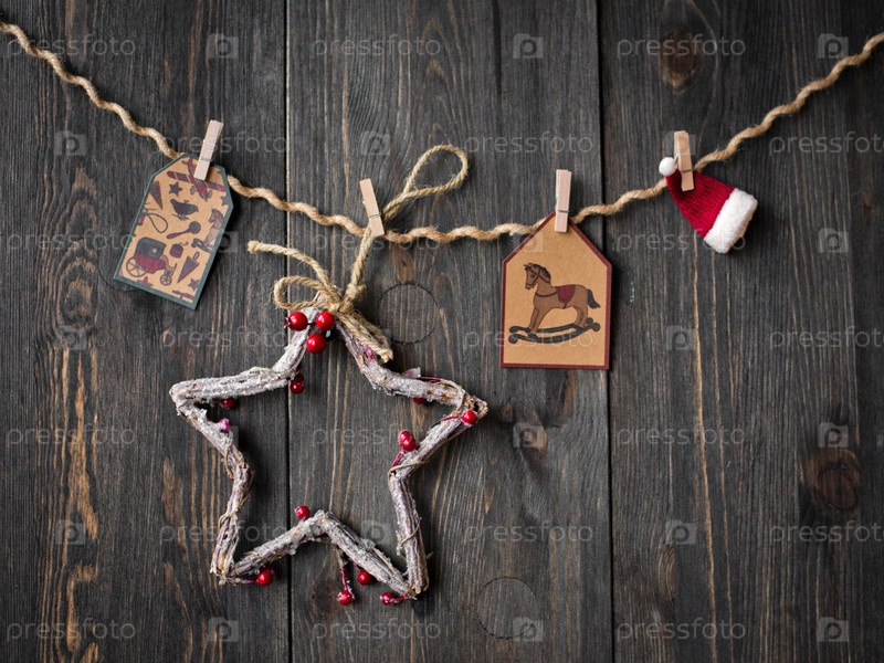 Новогоднее украшение на деревянном фоне