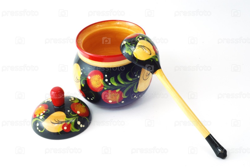 Расписанные под хохлому ложка и сахарница