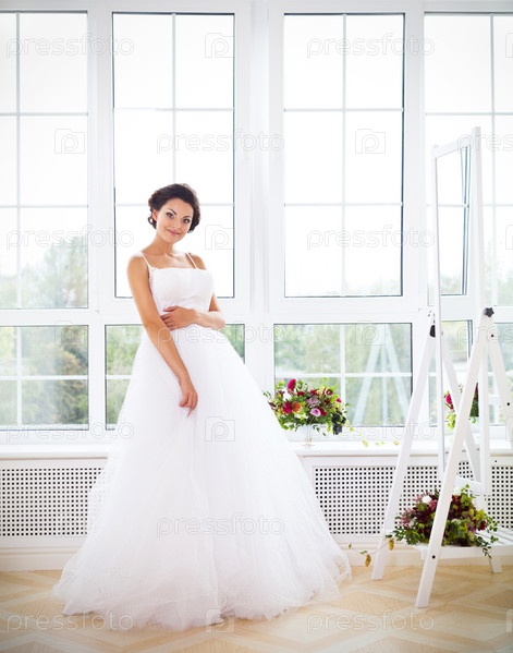 Молодая красивая невеста меряет платье