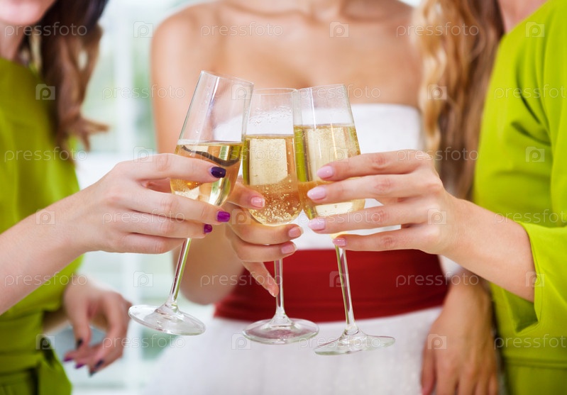 Руки невесты и друзей с шампанским