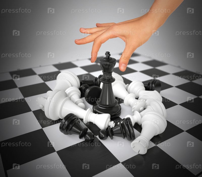 Рука переставляет фигуру на шахматной доске