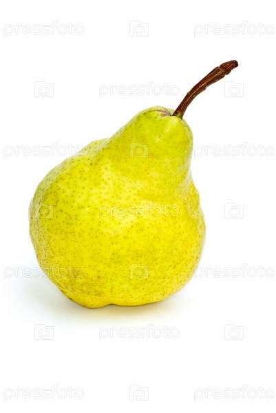 Желто-зеленая груша на белом фоне