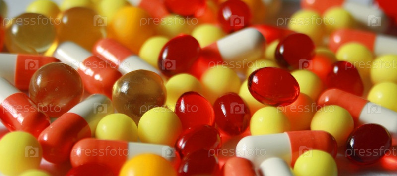Разноцветные таблетки и капсулы, фон