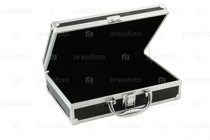 Открытый кейс на белом фоне