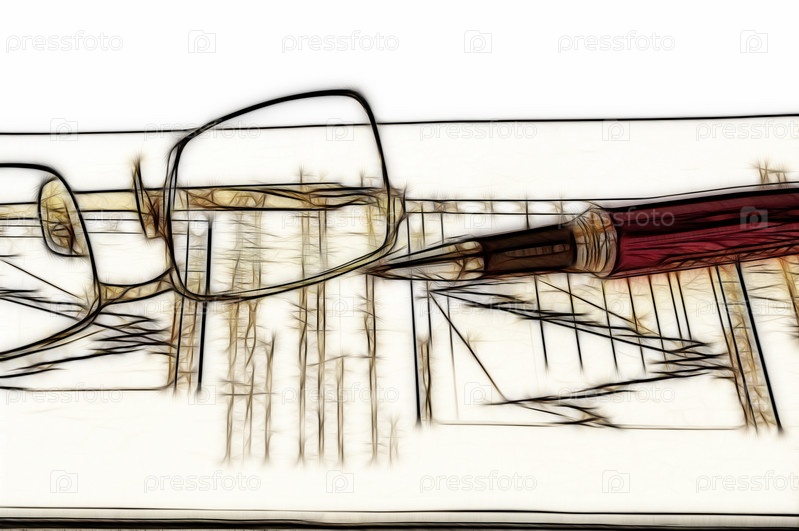Ручка, очки и график