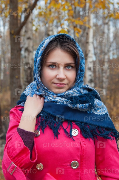 Девушка с голубыми глазами в осеннем лесу