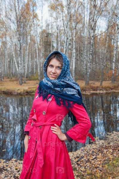 Девушка с голубыми глазами в осеннем лесу