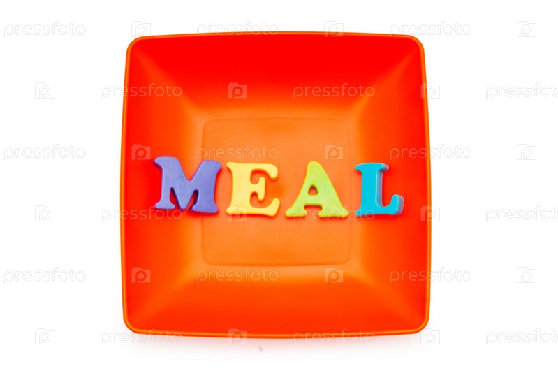 Надпись 'meal' на оранжевой тарелке