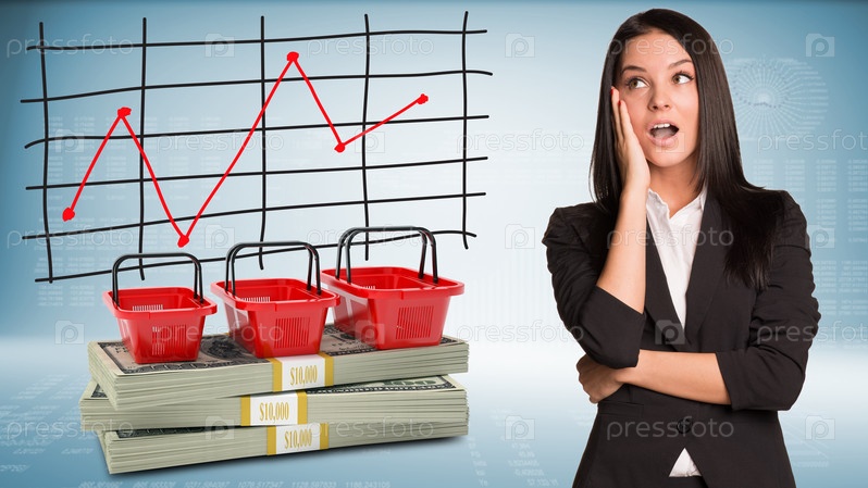 Бизнес-леди и продуктовые корзины