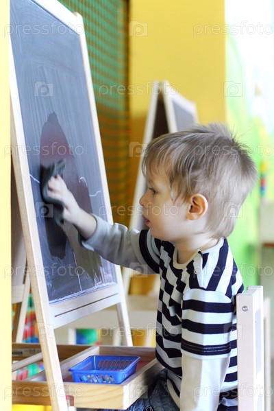Мальчик стирает рисунок с доски
