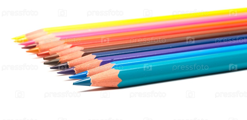 Разноцветные карандаши на белом фоне
