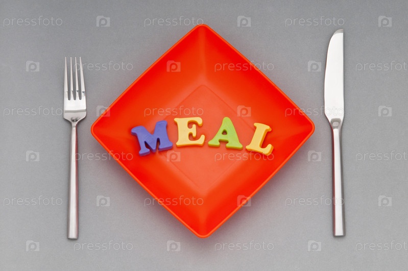 Тарелка с надписью 'meal' на сером фоне