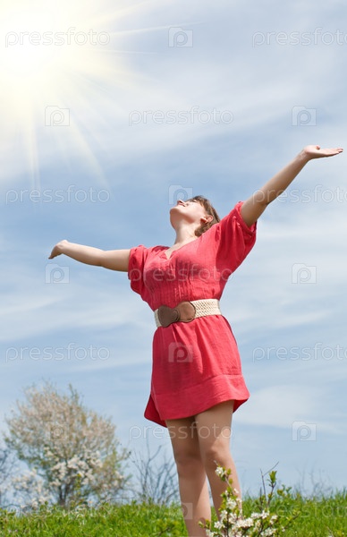 Молодая девушка на фоне солнечного неба