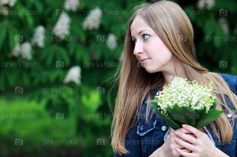 Портрет красивой блондинки с букетом ландышей