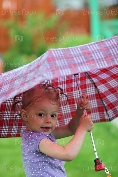 Маленькая девочка с зонтиком в парке