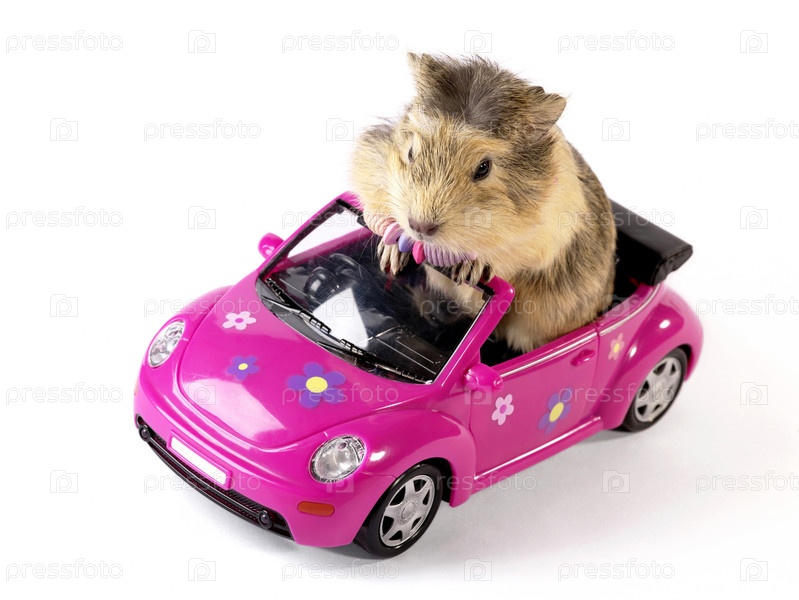 Морская свинка в розовом автомобиле