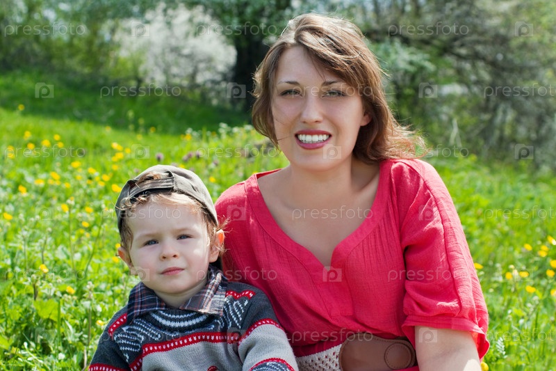 Портрет матери и сына на фоне природы
