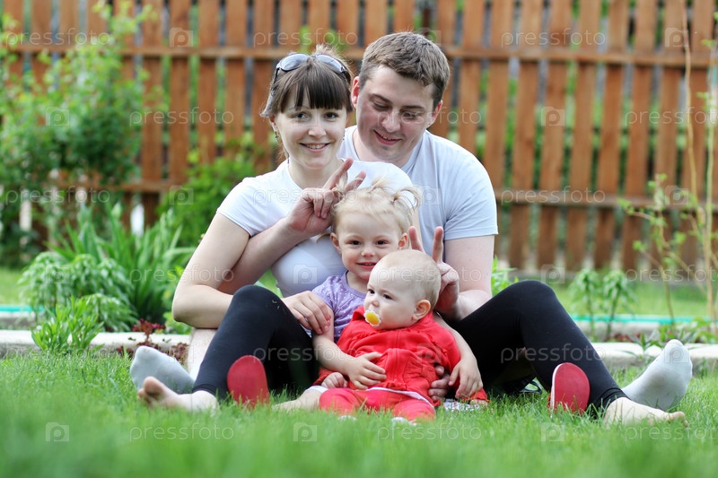 Семья отдыхает на открытом воздухе